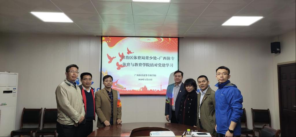 1月13日下午,自治区体育局青少年体育处与我校体育与教育学院结对党建学习活动在学校第二会议室举行。出席会议活动的有自治区体育局青少处陈以平处长、黄宗伟调研员、文春晖主任,以及我校邱团副校长、体育与教育学院党总支书记黄昀教授、苏祝捷院长。