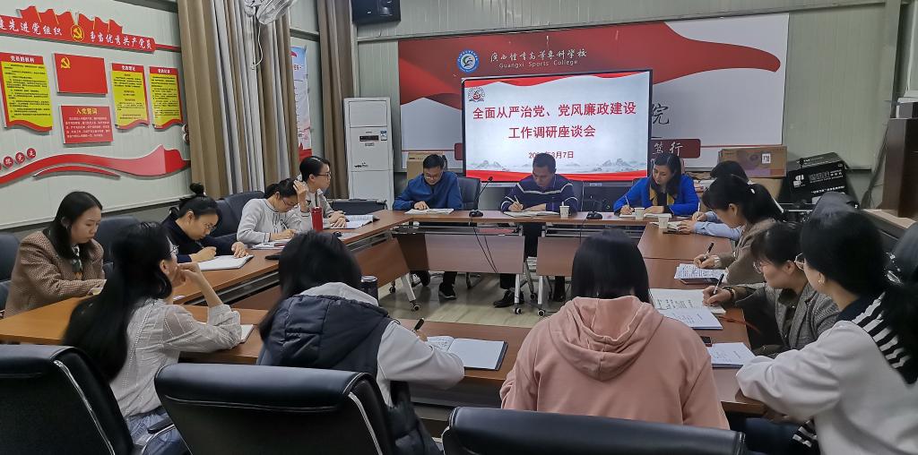 3月6-7日,学校纪委书记罗黎造到体育与教育学院、运动科学与健康学院、体育经济管理学院和马克思主义学院调研2023年学校全面从严治党、党风廉政建设工作,纪委副书记、纪检监察室主任岑益梅,纪检监察室副主任李桂敏陪同调研。各学院班子成员,老、中、青教师,行政人员等代表参加调研座谈。