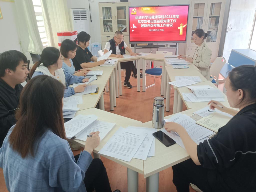 3月21日下午,运动科学与健康学院2022年度党支部书记抓基层党建工作述职评议考核大会在学院三楼党员活动室召开。学院党总支部委员、各党支部委员参加会议。会议由学院党总支部陆秋书记主持。