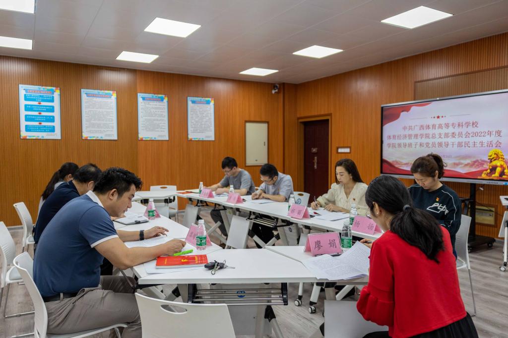 3月24日,体育经济管理学院党总支在长岗校区瑞兴楼402教室召开2022年度学院领导班子和党员领导干部民主生活会。学院领导班子参加会议,党总支支委列席会议,学校党委副书记、校长胡英清同志到会指导。会议由体育经济管理学院党总支书记黎智达主持。