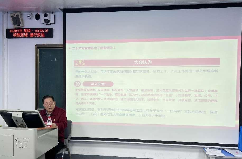会前,两个支部全体党员集中上党课。退休直属第二党支部书记范海枫、退休直属第一党支部书记李为民分别为全体党员讲了题为“深入学习贯彻党的二十大报告”和“关于《中国共产党章程(修正案)》的决议——哪些新内容写入党章”的专题党课。