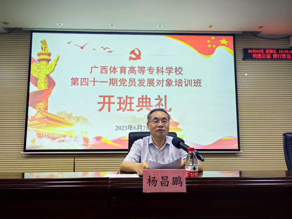 学校党委书记、学校党校校长杨昌鹏作开班动员讲话。杨昌鹏书记在讲话中指出,在全党上下深入开展学习贯彻习近平新时代中国特色社会主义思想主题教育之际,学校举办此次培训班具有重要意义。他表示对发展对象进行培训教育是发展党员工作的一个重要环节,也是学习贯彻习近平新时代中国特色社会主义思想主题教育的重要举措,学校党委高度重视此次培训工作,在课程上进行了精心安排。他希望学员们充分认识本次培训班的重要性,端正学习态度,严守培训纪律,争取做学有所获、学有所成、学有所用的模范,以实际行动争取早日入党。