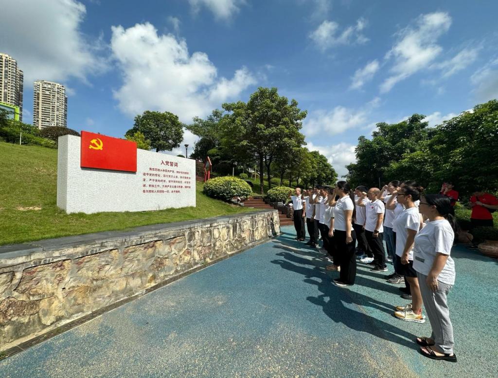 在入党宣誓碑前,全体党员重温了入党誓词,以庄严神圣的方式表达了对党的无限热爱和绝对忠诚。重温宣誓结束后,党员们学习了习近平总书记视察广西重要讲话和重要指示精神,现场体悟习近平新时代中国特色社会主义思想的思想伟力、真理伟力、实践伟力。