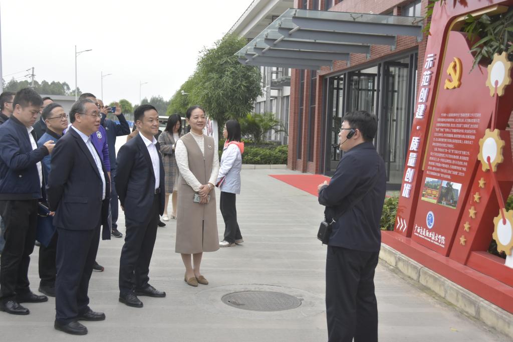 杨昌鹏书记一行在广西交通职业技术学院党委书记陈湘如的带领下先后参观了党建示范园、“领路人”课程思政实践基地、汽车工程学院擎力文化园、土木建筑工程学院“红色匠心”育人阵地、学校党建成果展等,直观全面了解广西交通职业技术学院党建“双创”建设经验及做法。