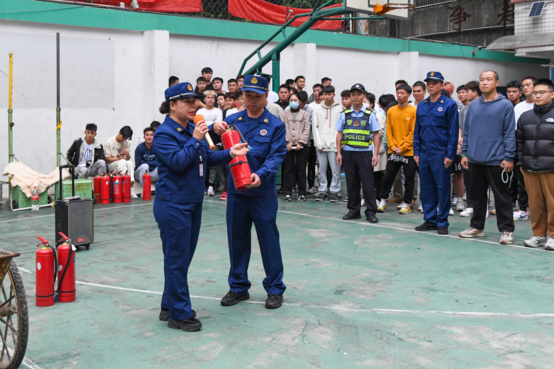 兴宁区消防救援大队教官讲解灭火器正确使用