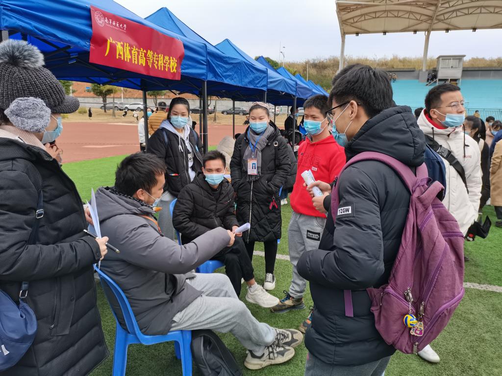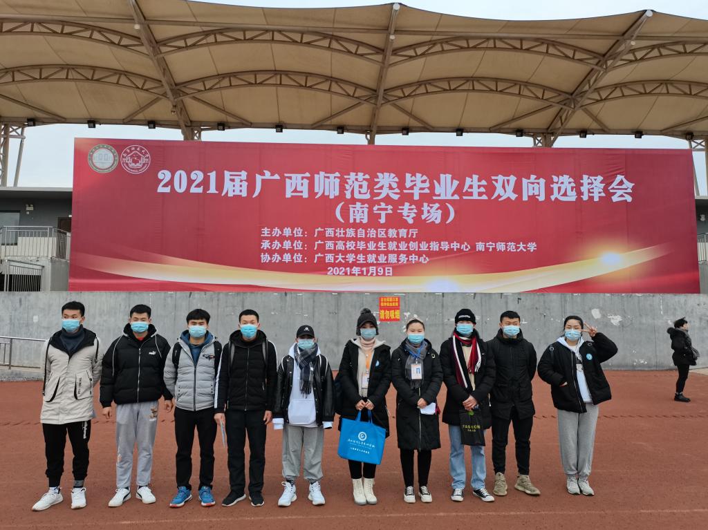 2021年1月9日,全区2021届师范类毕业生就业双向选择洽谈会(南宁专场)在广西师范大学五合校区运动场举行。我校就业创业指导中心老师、体育教育专业毕业班辅导员带领我校53名毕业生参加洽谈会,并有1名毕业生和用人单位现场签订就业协议书,取得了不错的效果。
