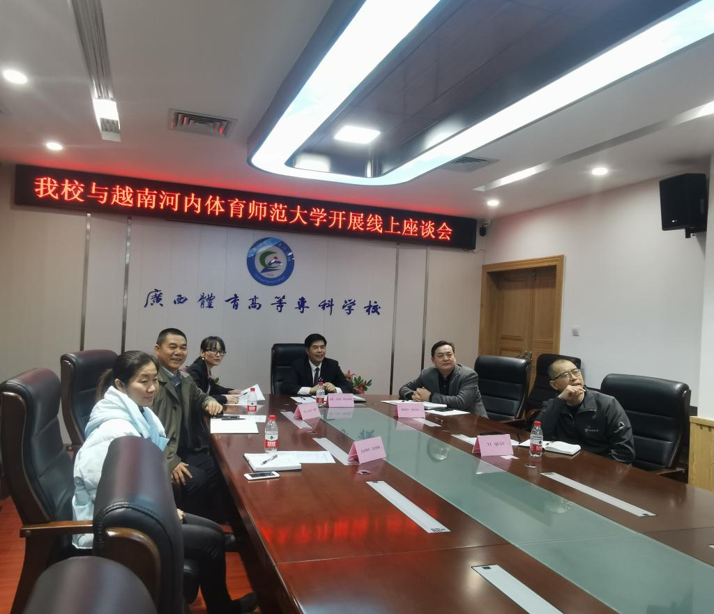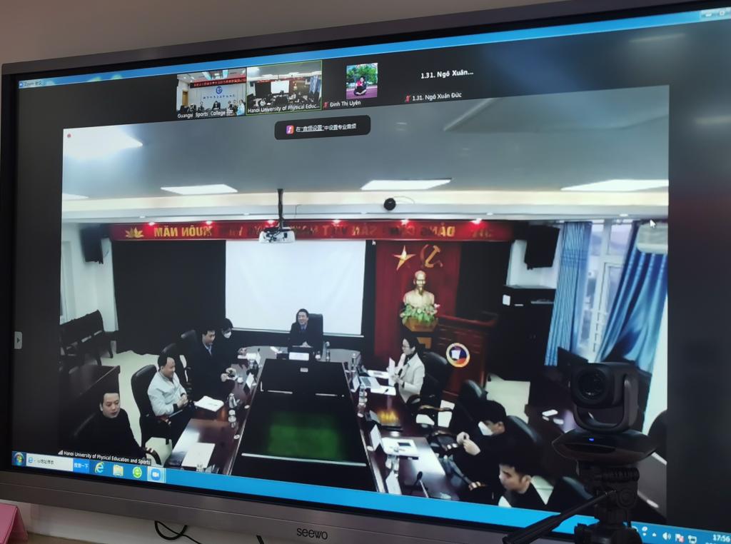 1月12日下午,我校与友好合作院校--越南河内体育师范大学举行线上座谈会,就疫情防控背景下如何开展教育交流与合作及进一步加强两校合作事宜深入交换了意见。我校胡英清校长、邱团副校长,河内体育师范大学大学阮唯决校长、冯春勇副书记、向春元副校长、阮英俊副校长以及两校相关职能部门领导、国际交流中心工作人员参加了座谈。