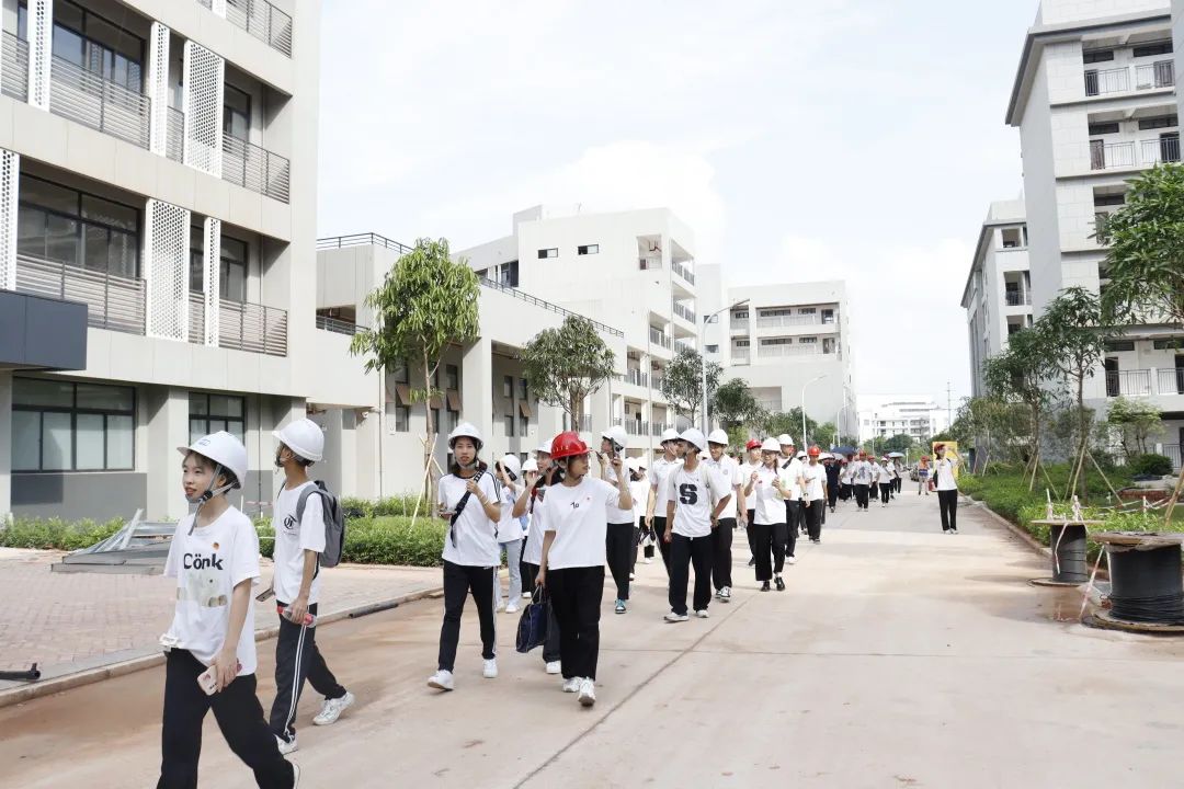 随后,同学们来到新校区。新校区办的同志向来访师生详细地介绍了新校区总体情况、校园功能布局与建设进度,带领师生实地参观了各个教学楼、学生宿舍、大学生活动中心内功能区域的建设情况,深入了解新校区环境。
