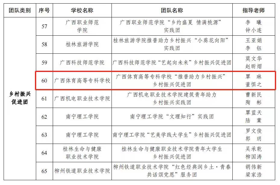 近日,根据自治区党委宣传部、自治区文明办、自治区教育厅、共青团广西区委和广西学联联合印发的《关于公布2023年广西大中专学生志愿者暑期文化科技卫生“三下乡”社会实践活动重点团队名单的通知》,经评议研究,我校有3支团队荣获重点团队,其中“促进民族团结进步示范村创建”民族团结实践团荣获全国重点团队。“宣讲能手”理论普及宣讲团和“推普助力乡村振兴”乡村振兴促进团两支团队荣获自治区重点团队。