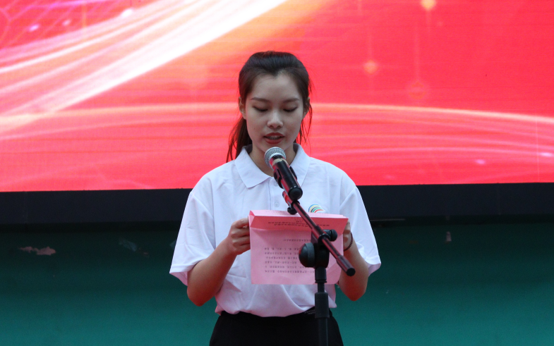 出征仪式上,首先由林敬华致辞,对活动和志愿者提出要求和希望;随后,我校学生作为高校大学生志愿者代表发言,对参与此次活动进行表态和倡议;接着,各领导为志愿者代表进行授旗;最后,韦建勋宣布第六届广西万名全民健身志愿者服务百县千乡活动志愿者正式出征。