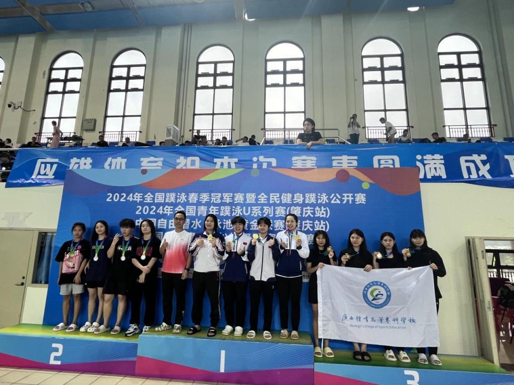 2024年全国蹼泳春季冠军赛暨全民健身蹼泳公开赛、2024年全国青年蹼泳U系列赛(肇庆站),于2024年4月17-22日在广东省肇庆市广东工商职业技术大学游泳跳水馆举行。本次比赛作为蹼泳项目全国最高级别赛事之一,由国家体育总局水上运动管理中心主办,共有来自全国各省市、高校23支代表队212名运动员参赛。我校由体育运动学院负责组队,派出9名学生参赛。