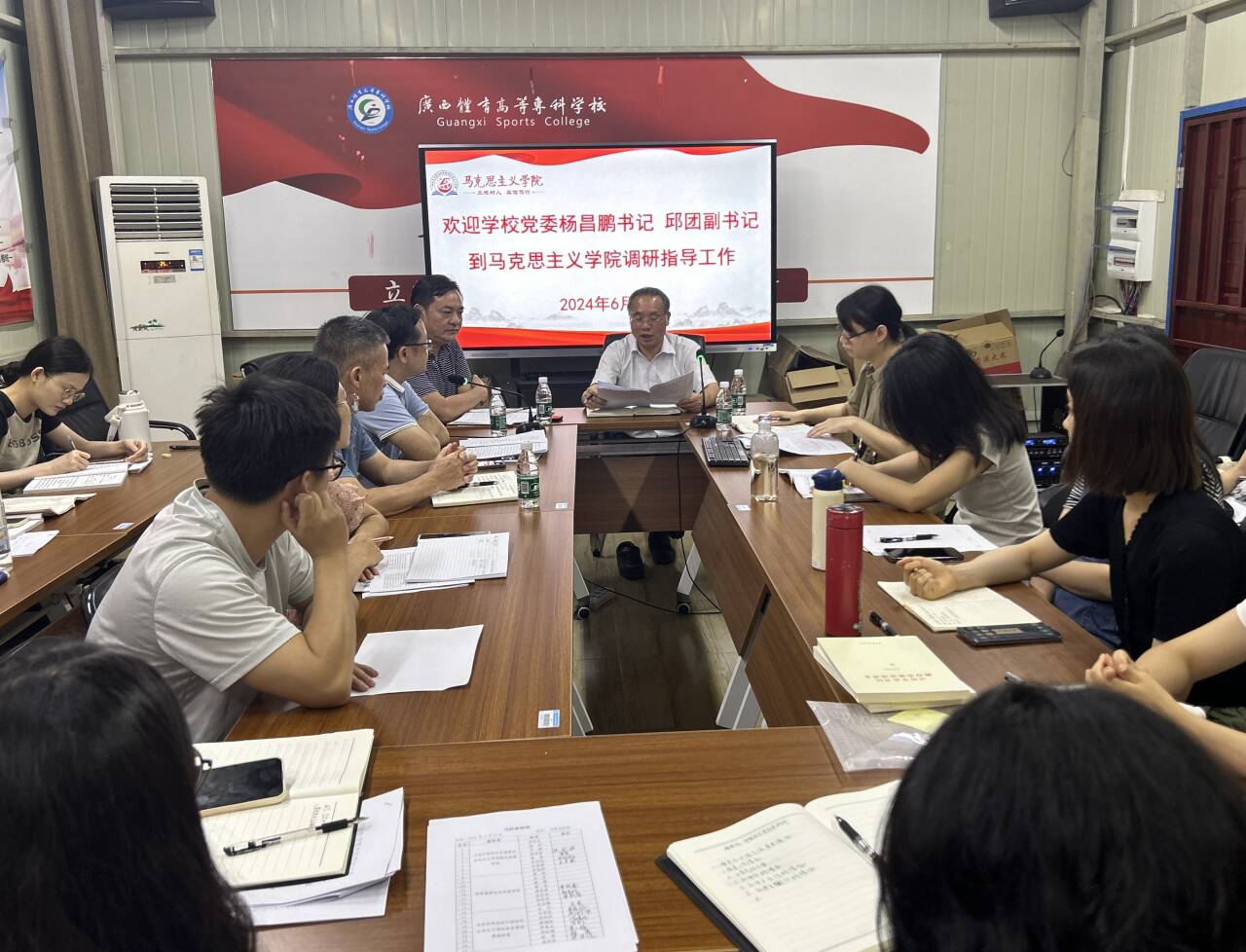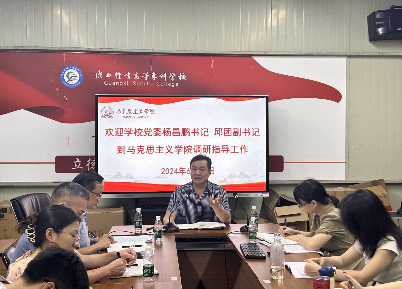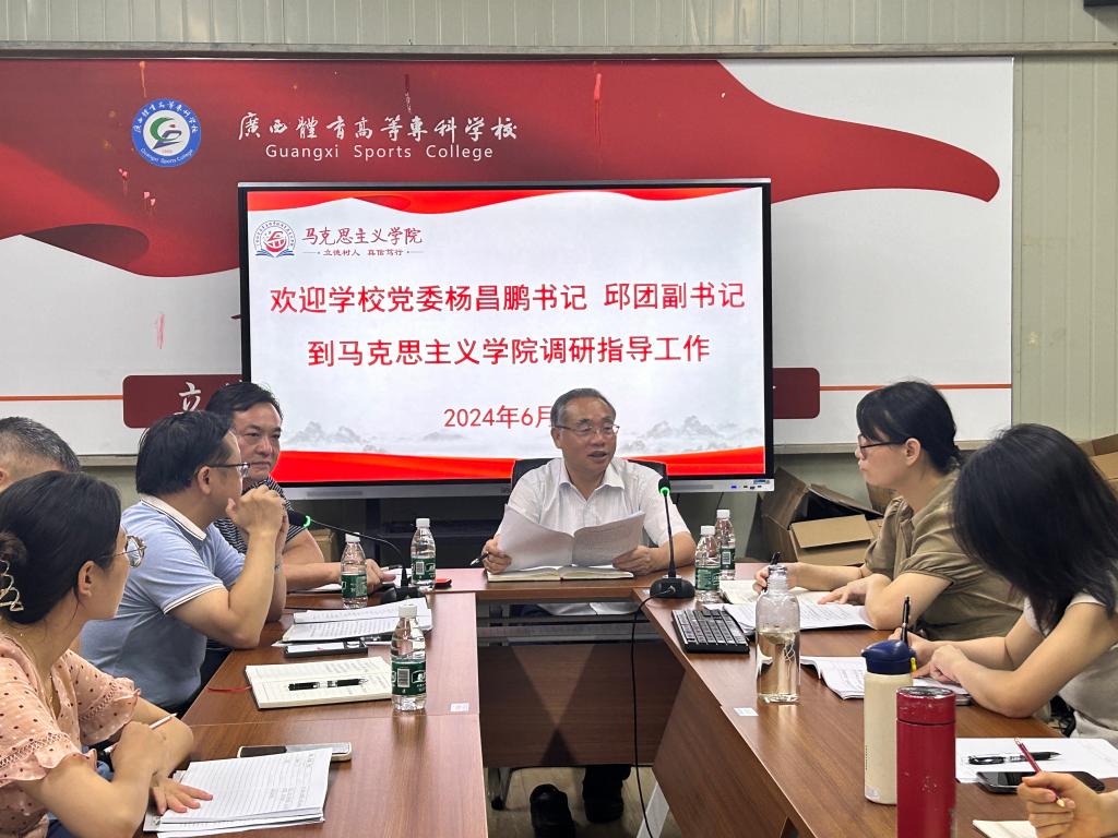 6月19日下午,学校党委杨昌鹏书记、邱团副书记到马克思主义学院调研指导工作。学校党委宣传部部长刘义飞、马克思主义学院班子成员、全体思政课教师参加了调研座谈会。会议由马克思主义学院院长黄航主持。