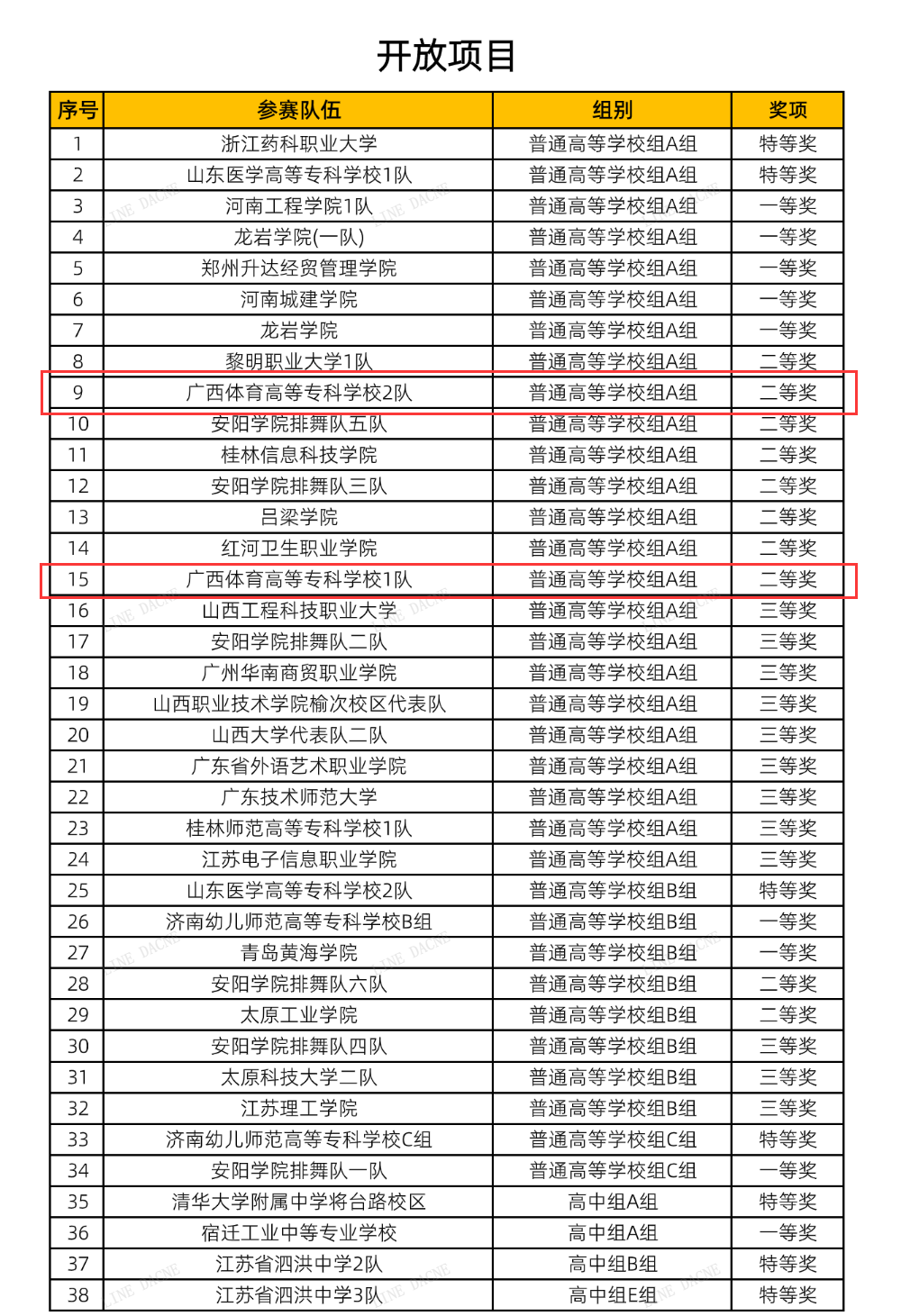 本次比赛共吸引了来自全国各地约200个队伍2万余人参赛。由体育师范学院、体育运动学院、体育管理学院、体育建筑学院106位同学共同组成的1队获得了开放项目二等奖、规定项目三等奖、自选项目三等奖。由体育师范学院体育艺术表演专业(鱼悦产业学院联合办学点)的同学们组成的2队获得了开放项目二等奖、自选项目二等奖。