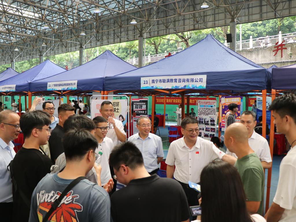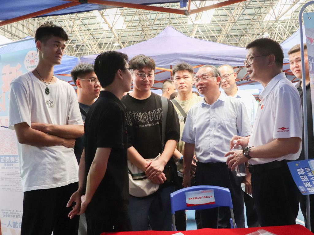 杨昌鹏书记、韦建勋校长在现场给予毕业生求职就业指导,了解毕业生求职意愿