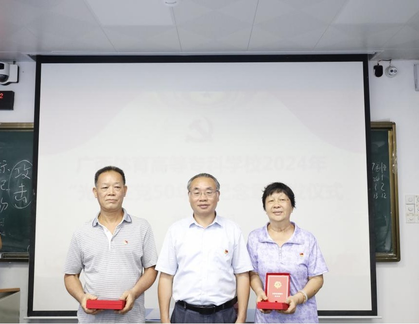 学校党委书记杨昌鹏同志对荣获“光荣在党50年”纪念章的同志表示衷心的祝贺和敬意,感谢他们为学校的建设和发展作出的贡献,他指出,纪念章的颁发,既承载着对老党员的敬意与关怀,也蕴含着对青年党员的教育和激励,希望青年党员积极向老党员学习,学习老党员吃苦耐劳的优良传统和工作干劲,传承精神,主动担当作为,为学校高质量发展积极贡献力量。