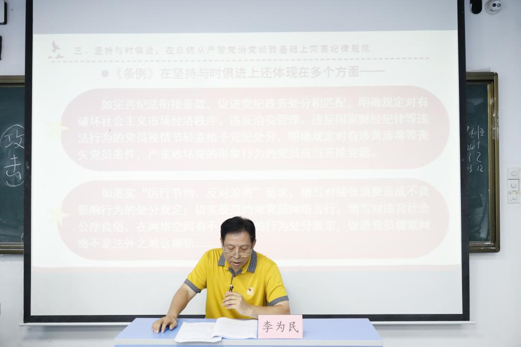 活动开始,学校退休直属第一、第二党支部全体党员集中上党课,退休直属第一党支部书记李为民同志、退休直属第二党支部书记范海枫同志分别以《新修订<中国共产党纪律处分条例>的突出特点及作用》和《铸牢中华民族共同体意识》为题讲授党课。通过学习,进一步提升了老党员对党纪国法的理解,增强了严守纪律和规矩的政治自觉、思想自觉和行动自觉;进一步深刻了对铸牢中华民族共同体意识丰富内涵、重大意义和实践要求的理解。