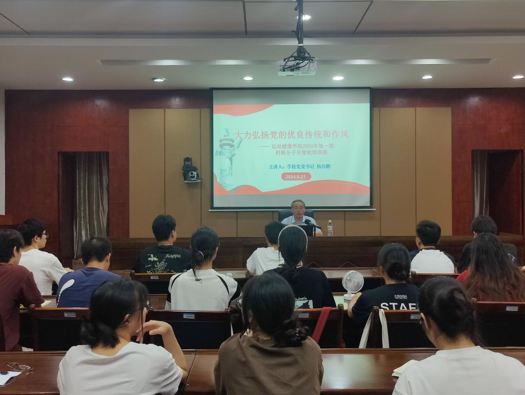 运动健康学院分党校2024年第一期入党积极分子培训班自5月31日启动,至6月22日结束,历时近一个月。培训期间,培训班邀请了学校党委书记杨昌鹏同志,学校党委组织部副部长胡天晓同志,马克思主义学院余向昀、周婧怡、周珂伊、苏芳4位老师为学员们进行专题授课。