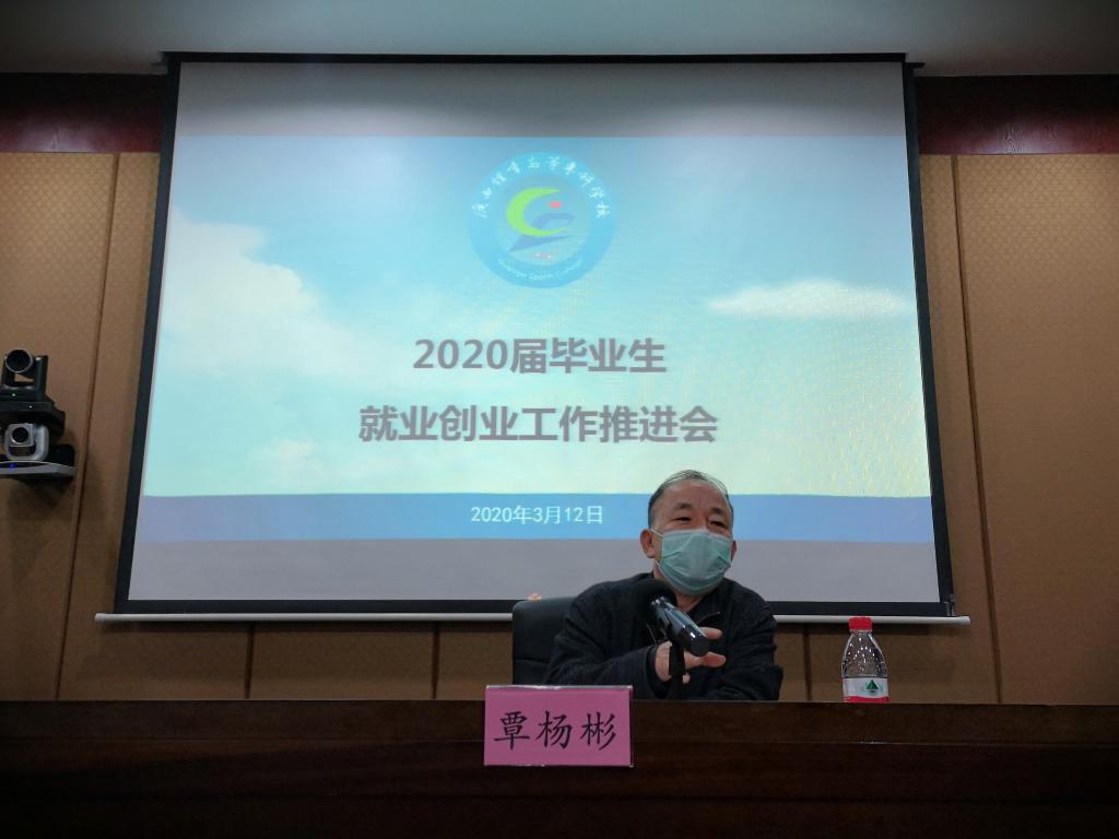 为了深入贯彻落实习近平总书记关于疫情形势下做好高校毕业生就业工作的指示精神,全面落实疫情防控期间教育部、教育厅、学校相关文件要求,3月12日下午,我校2020届毕业生就业创业工作推进会在7楼报告厅召开。覃杨彬副校长参加会议并总结发言,招生就业处全体人员、各学院党总支书记、各学院党总支副书记、毕业班辅导员参加会议。会议由招生就业处覃琳处长主持。