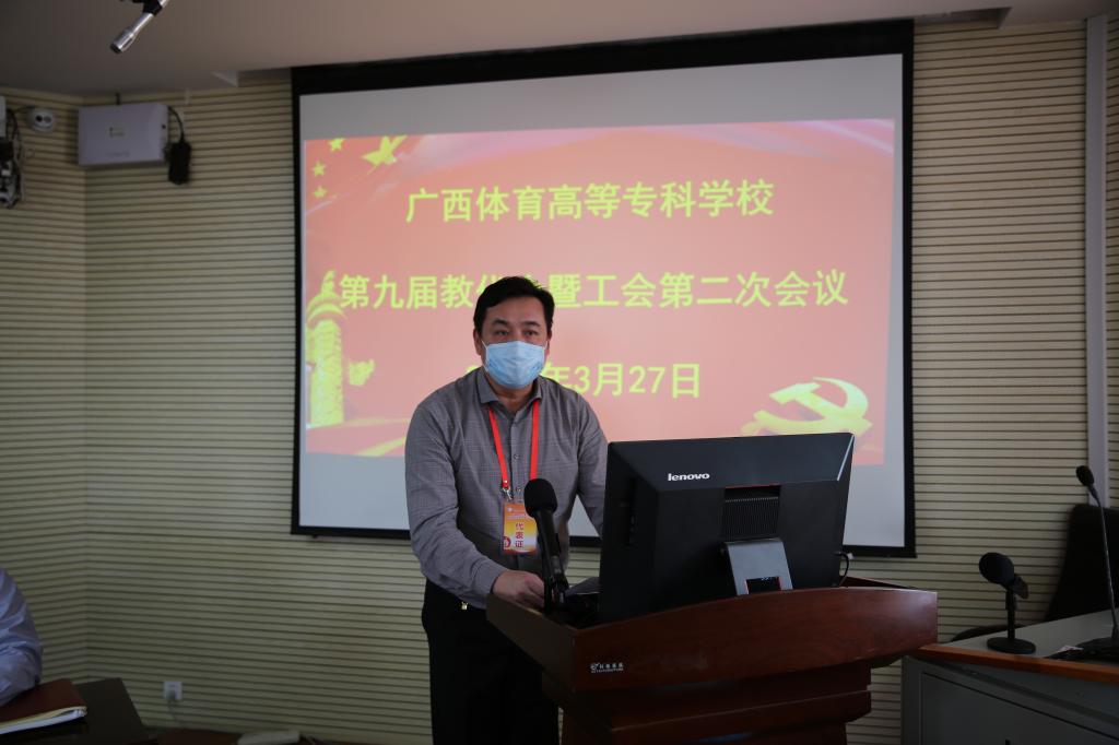 周璋斌书记提出,一是要取长补短,不断巩固学校各项事业取得新发展。2019年来,学校在党建、教学改革、办学规模等工作上取得了新发展,新校区建设和旧房改造工作也获得了自治区体育局党组的大力支持。今年,要继续坚持和完善党委对学校工作的全面领导,不断巩固和发展“不忘初心、牢记使命”主题教育成果,直面会议代表提出的各项问题,在师资队伍、教学设施、应急机制和制度措施等方面推进改革,进一步推动“放管服”,对标对表双高建设条件扎实打基础,坚定的向职业教育发展道路前进。二是要进一步强化做好疫情防控的主体责任。当前疫情防控形势逐渐好转,但疫情防控工作随时处于动态变化,任何一个环节失守,都可能导致前功尽弃。尤其当前学校进入了开学准备阶段,更要绷紧疫情防控这根弦,杜绝麻痹大意。学校各级领导干部要压实责任,尽职尽责,教职员工要严格遵守纪律要求,相关部门要认真研判并组织好疫情防控培训、演练等相关工作。三是要贯彻执行好学校党委的工作决策。各单位要对照责任清单,认真贯彻2020年学校党政工作要点,坚决完成年度工作任务。今年学校党委将着力推进干部政治建设和作风建设,严格对二级学院执行议事规则进行督查,不折不扣的继续推进诊断与改进工作,不断完善和调整学校内设机构,继续做好招生工作,不含糊的执行好绩效办法和绩效考核,实事求是的根据学校办学方针完善和制定各项制度和政策。