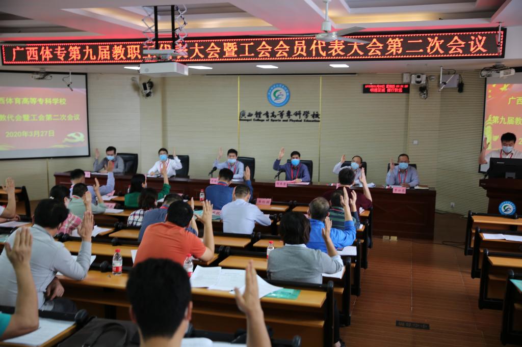 随后,全体正式代表进行审议表决。大会一致同意2019年学校工作报告,认为工作报告全面反映了学校2019年工作,尤其是通过开展“不忘初心、牢记使命”主题教育和内部质量保证体系诊断与改进工作,有效促进学校党建工作的提升,深化了学校教育教学改革发展,取得了明显成效。大会赞成学校将坚持以习近平新时代中国特色社会主义思想为指导,全面贯彻落实党的十九大和十九届二中、三中、四中全会精神,持续深入开展“不忘初心、牢记使命”主题教育,强化党对学校工作的全面领导,着力加强“双高”建设,努力推动学校实现转型发展。