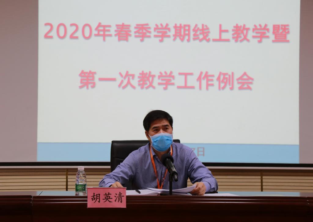 胡英清校长指出疫情防控期间对教学管理部门和服务部门都提出了新的要求,各部门及学院要保证线上教学工作正常有序地开展,学生通过线上教学切实达到教学内容不减、要求不降、质量不低的要求。他提出了五点要求:一是一是要进一步提高线上教学活动的重视程度,加强已开展线上教学的课程的规范管理。各学院(部)、教务科研处及相关部门要根据上级的要求,进一步做好教师线上教,学生线上学,同时适当增加学生自主学习时间,强化线上学习过程和多元考核评价的质量要求。二是要切实利用线上教学活动的契机,增强教师信息化教学意识,提高信息化应用能力。要根据线上教学反馈的情况,深入分析研究,为下半学期乃至将来如何在资源条件不足的情况下开展培训和培养工作总结好经验。三是要加强对线上教学的监控和指导,杜绝在线不在课的现象,确保线上教学的质量,保证学生通过在线教育,学到知识和技能。四是抓细抓实学生返校后的线上线下教学准备工作。五是做好2020届毕业生的相关工作,保证毕业生顺利毕业。