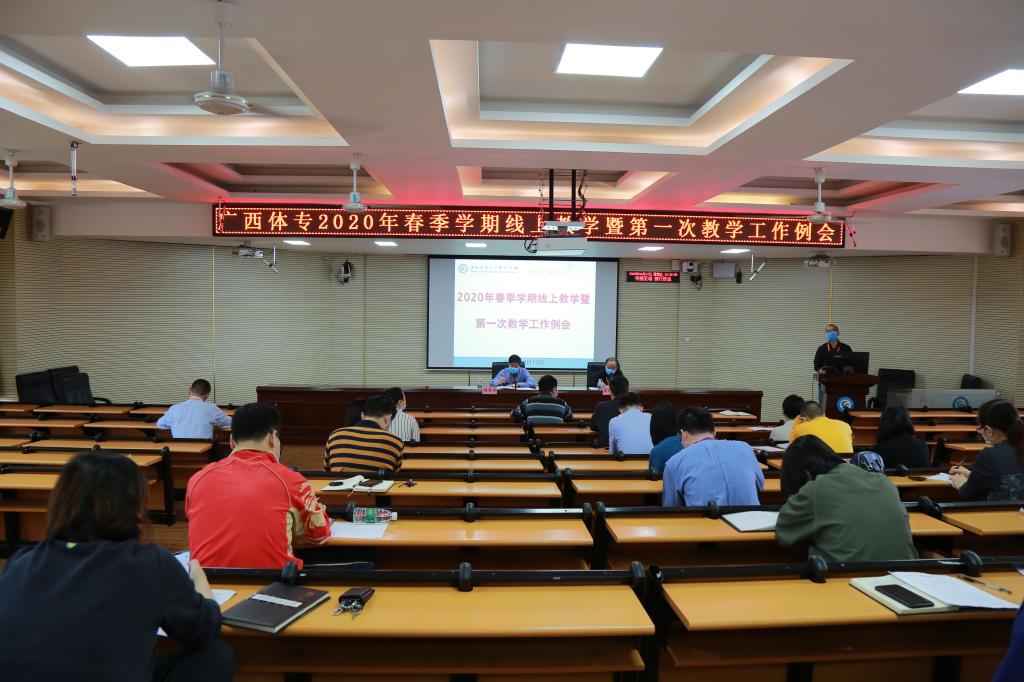 4月17日上午,我校在402报告厅召开2020年春季学期线上教学暨第一次教学工作例会,推进线上教学相关工作。校长胡英清出席并讲话、副校长覃杨彬主持会议。学校办公室、教务科研处、学生工作处、信息网络资产设备处及各教学单位领导、教学秘书参加本次会议。