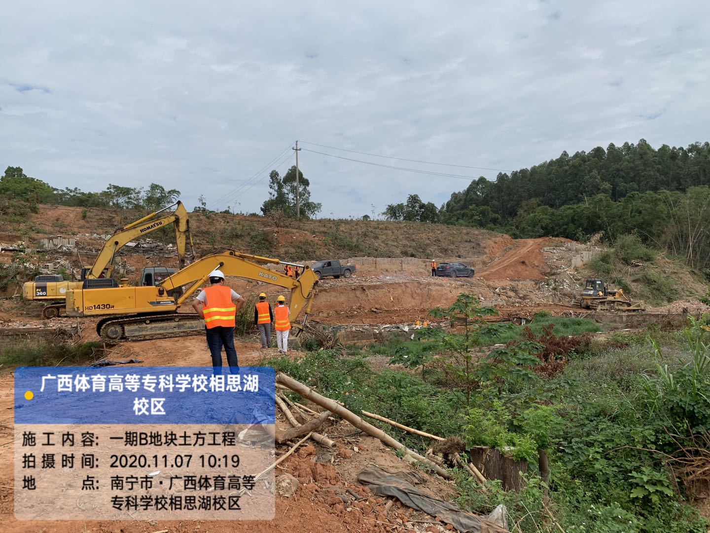 (一)11月4日,新校区建设管理办公室在项目现场组织召开第七次现场例会。会议要求:总承包方加强督促设计单位加快设计进度,2日内完成1#、2#宿舍楼、教学楼施工图基础优化设计及选型方案;于12月31日前完成1#、2#楼宿舍楼底板浇筑和教学楼桩基施工,并依此制定详细的施工进度计划和拟作业面的组织安排计划至全咨方和建设单位审核;在土方单位进场后做好各项安全交底工作,复核GFC预制桩数量及长度,提前做好预制桩的定制工作;要求各参建单位组织学习项目施工安全相关教育文件。(附图3)