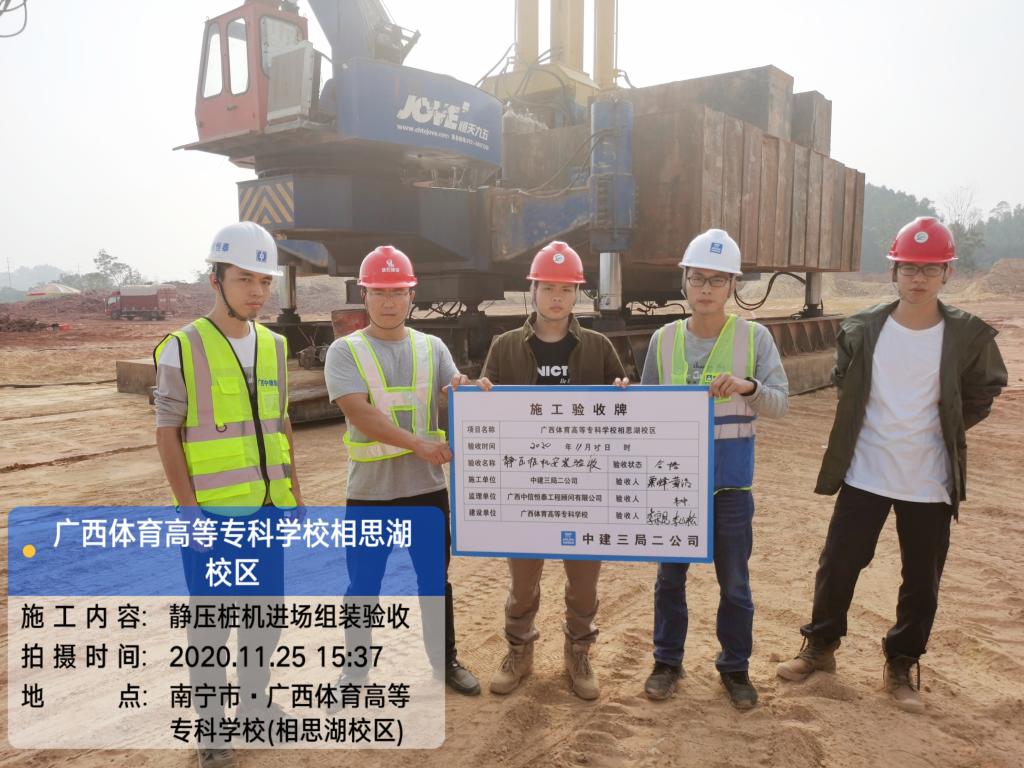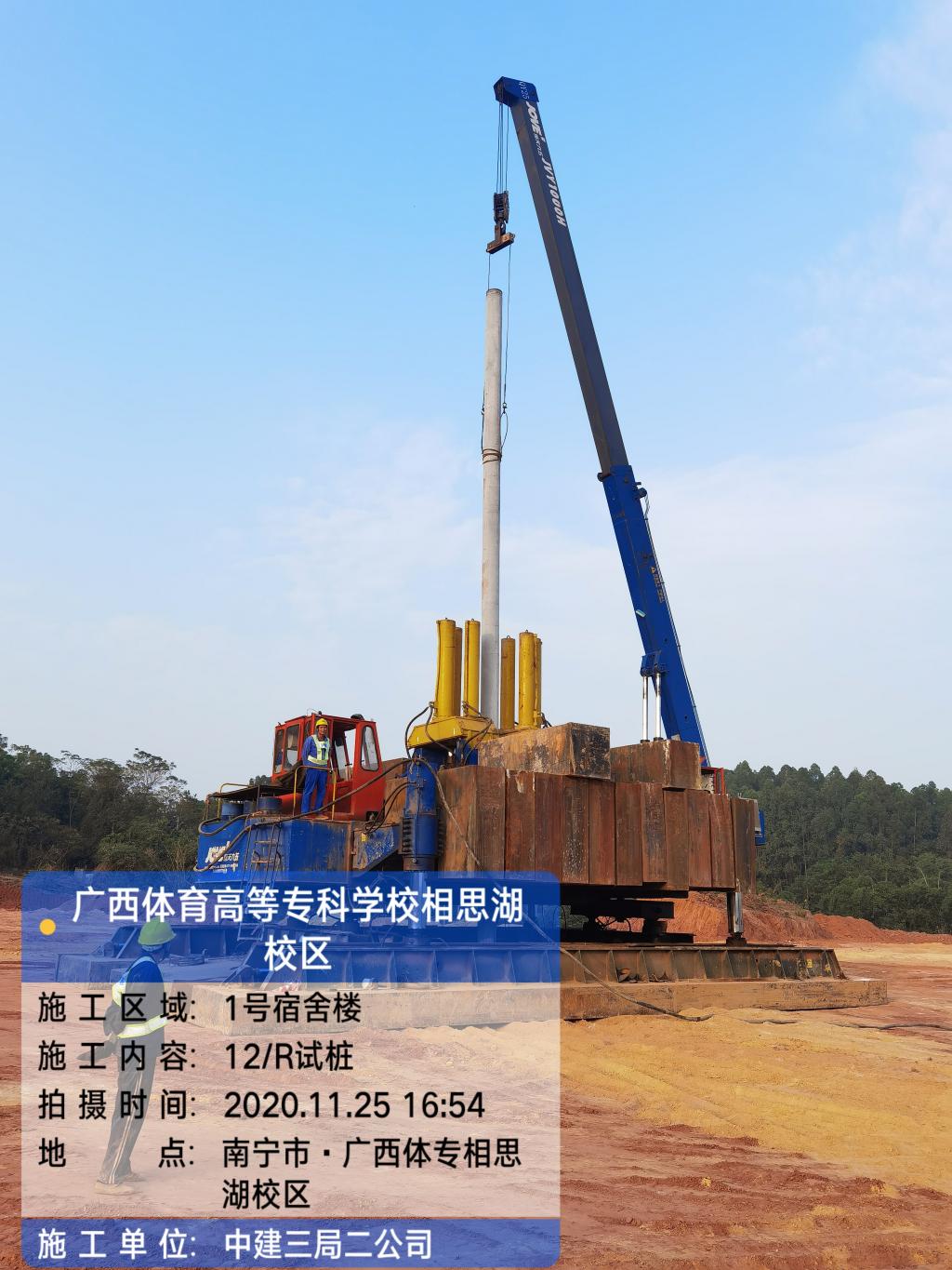 (八)预应力管桩和一台静压机进场,正在进行试桩施工。(附图2)