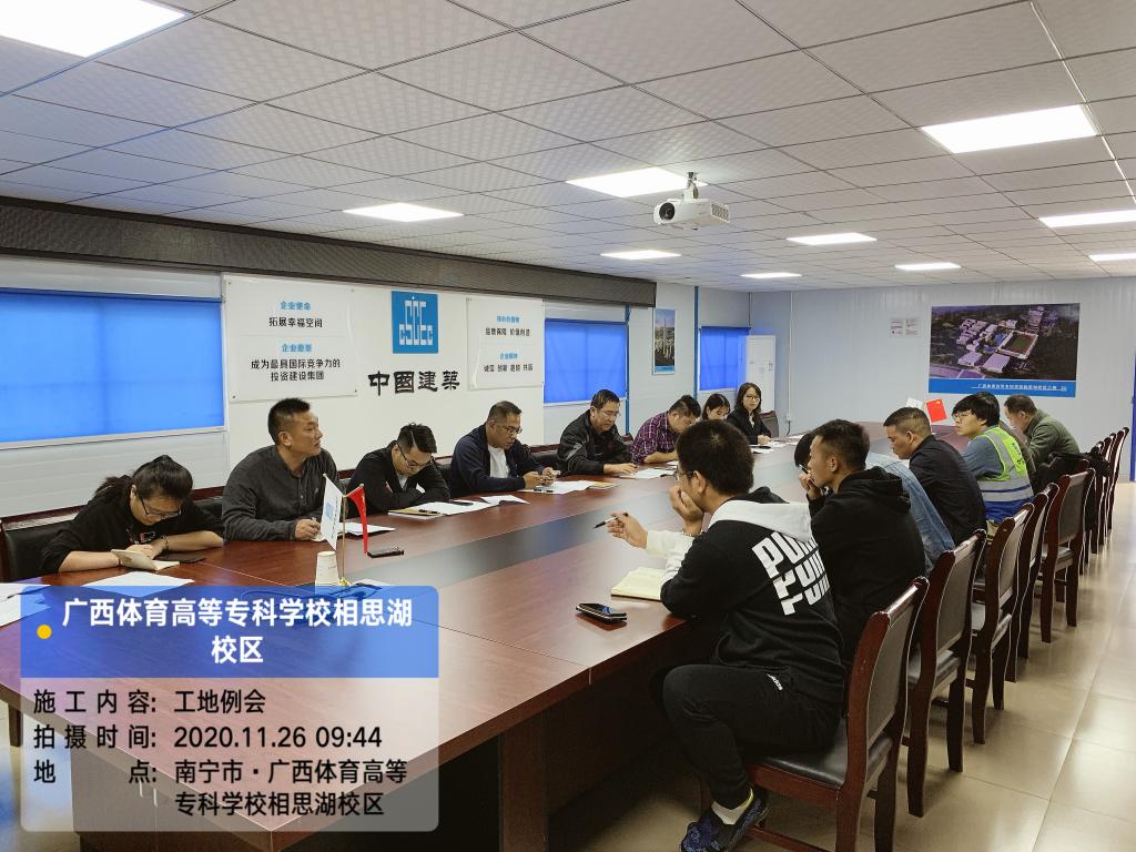 (九)11月17日,新校区建设管理办公室与全咨方相关人员在项目工地第二会议室召开项目协调推进会,重点研究如何尽快办理项目报批报建前期手续确保项目顺利推进。会议确定了办理施工许可证的总目标,明确由全咨方牵头做好办理施工许可证总体统筹工作,新校区办做好相关材料审核管理工作;确定由全咨方、建设单位和总承包方资料员组成项目资料小组,做好资料传递和管理工作;要求全咨方提前通知建设单位准备相关资料,并督促总承包方提交施工计划。(附图10)