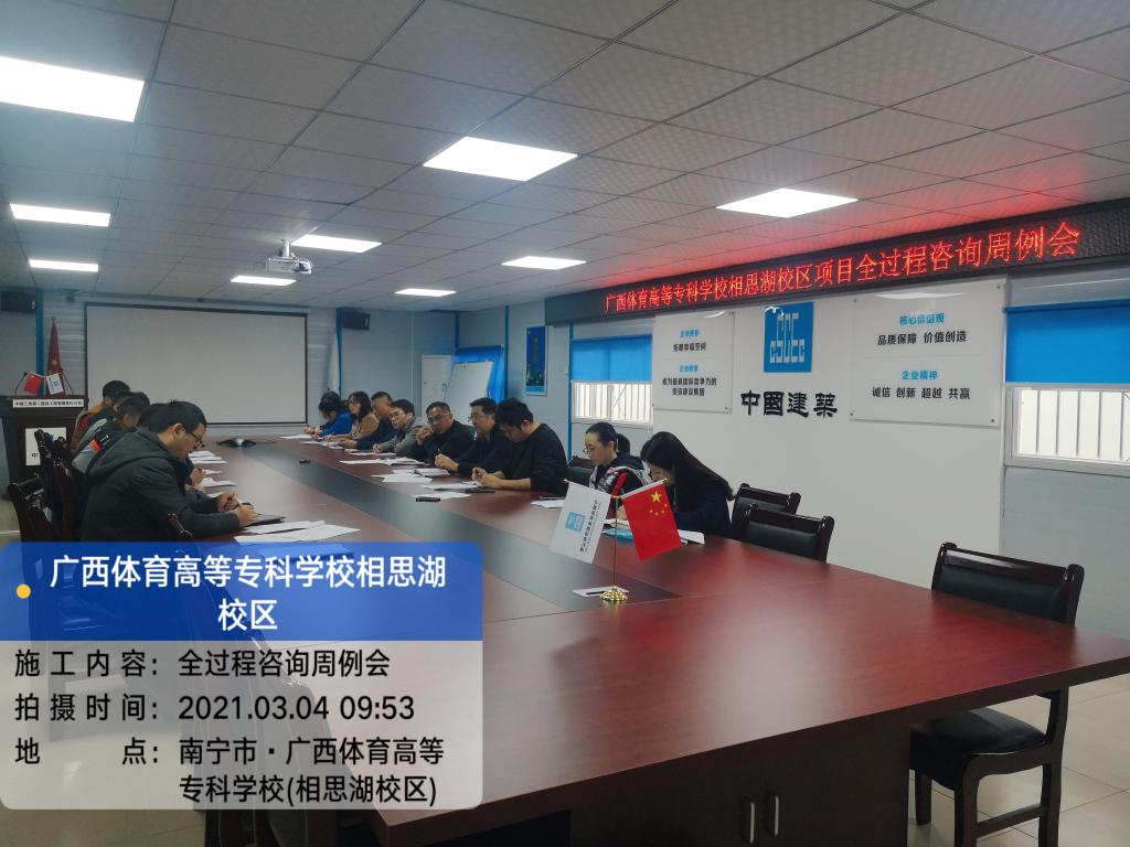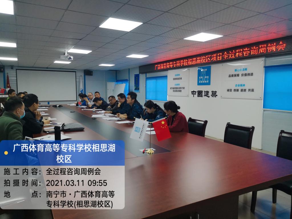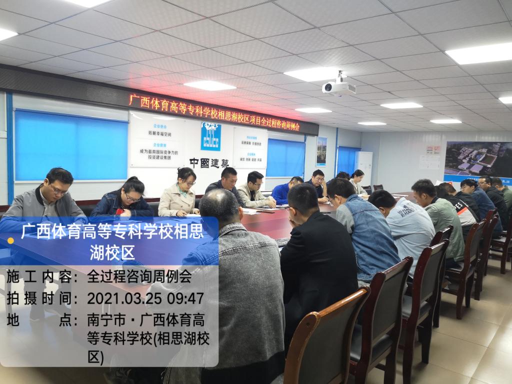 (四)3月9日,相思湖校区项目建设管理办公室与广西中信恒泰工程顾问有限公司在中信恒泰9楼办公室共同召开项目协调推进会。会议要求:全咨方督促协调总承包方在符合质量、安全、规范的前提下组织施工安排,根据时间节点完成相应的工程形象进度;由全咨方组织总承包方相关人员于3月10日赴广西幼儿师范高等专科学校武鸣校区考察学习;全咨方在本周内落实项目设计专业负责人,以加强项目设计工作的督促协调,并根据项目推进情况加大现场监理力量。