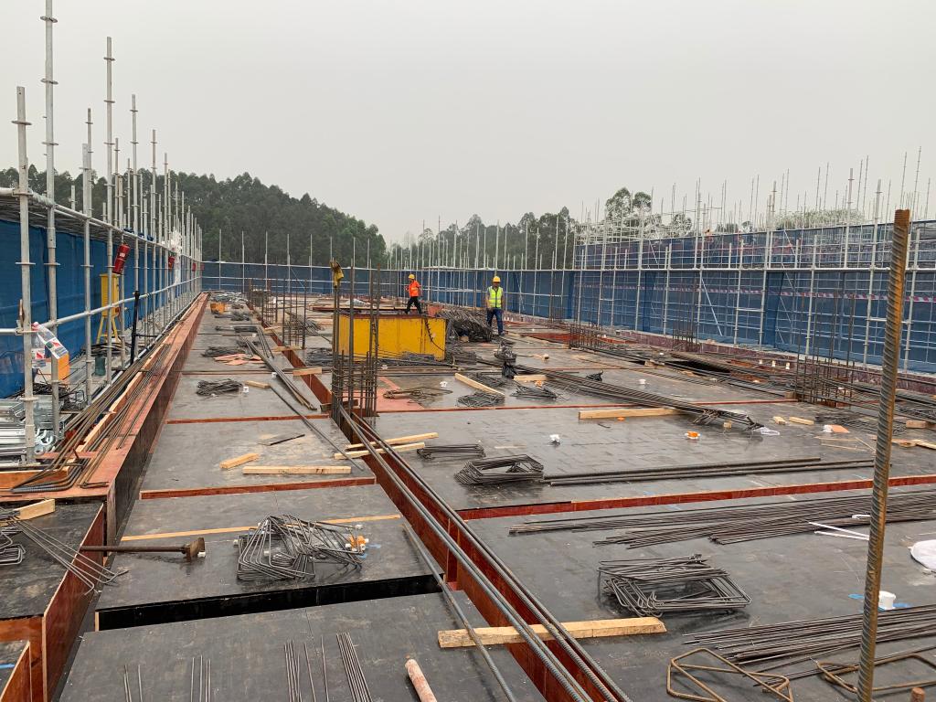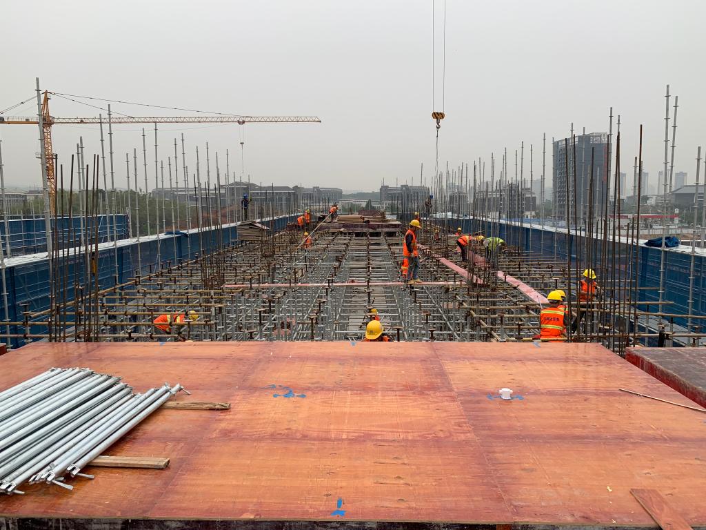 (三)完成1#宿舍楼三层梁板砼浇筑;完成2#宿舍楼7-15轴交A-P轴四层梁板模板安装成80%,水电预埋30%,1-6轴交A-P轴四层梁板钢筋绑扎50%;完成 教学楼桩基地梁砼浇筑和天然地基地梁砼浇筑。(附图1)