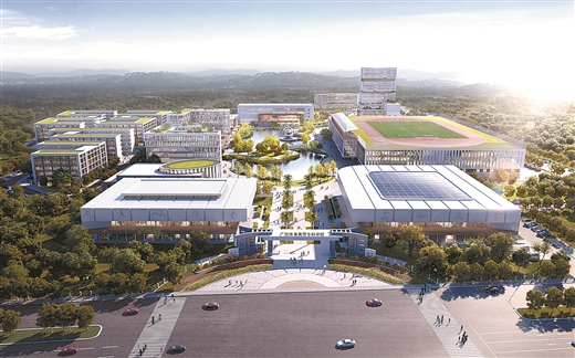 新校区建成后将“体育公园化”,将现代化运动场馆向社会开放。效果图