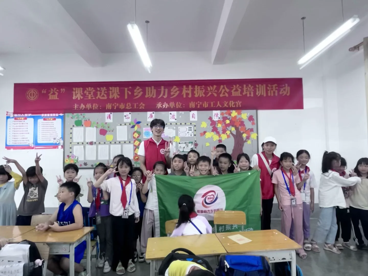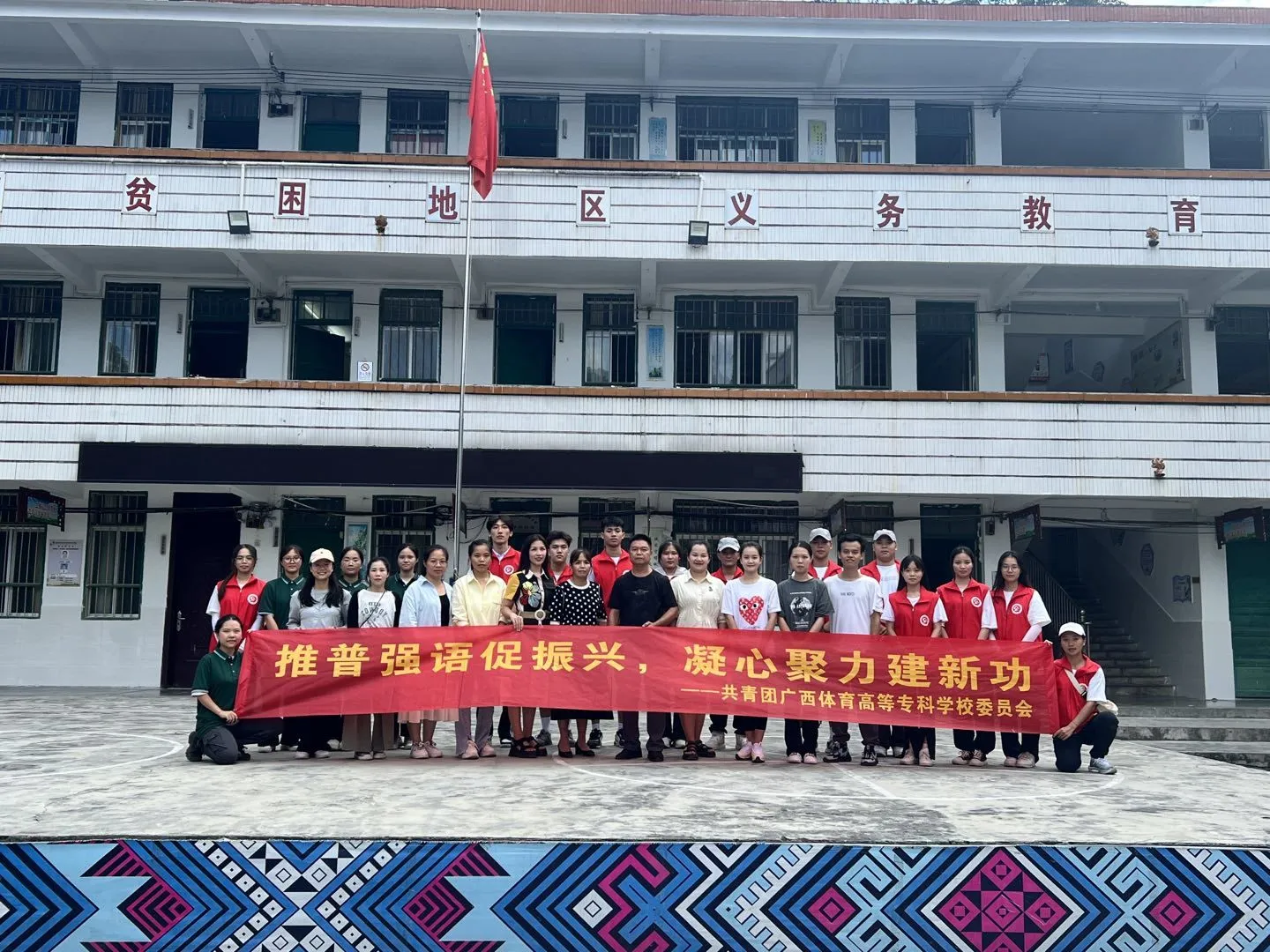 为深入学习贯彻落实党的二十大精神,贯彻落实习近平总书记关于教育的重要论述和关于语言文化的重要指示批示精神,加大国家通用语言文字推广力度,铸牢中华民族共同体意识,助力乡村振兴战略实施。2023年9月1日至9月3日,我校体育师范学院组织“托起明天的太阳”志愿服务队结合专业优势,依托学科特色,在南宁市马山县加方乡开展围绕“乘语言之舟,扬乡村振兴之帆”为主题的“推普助力乡村振兴”暑期社会实践志愿服务活动。