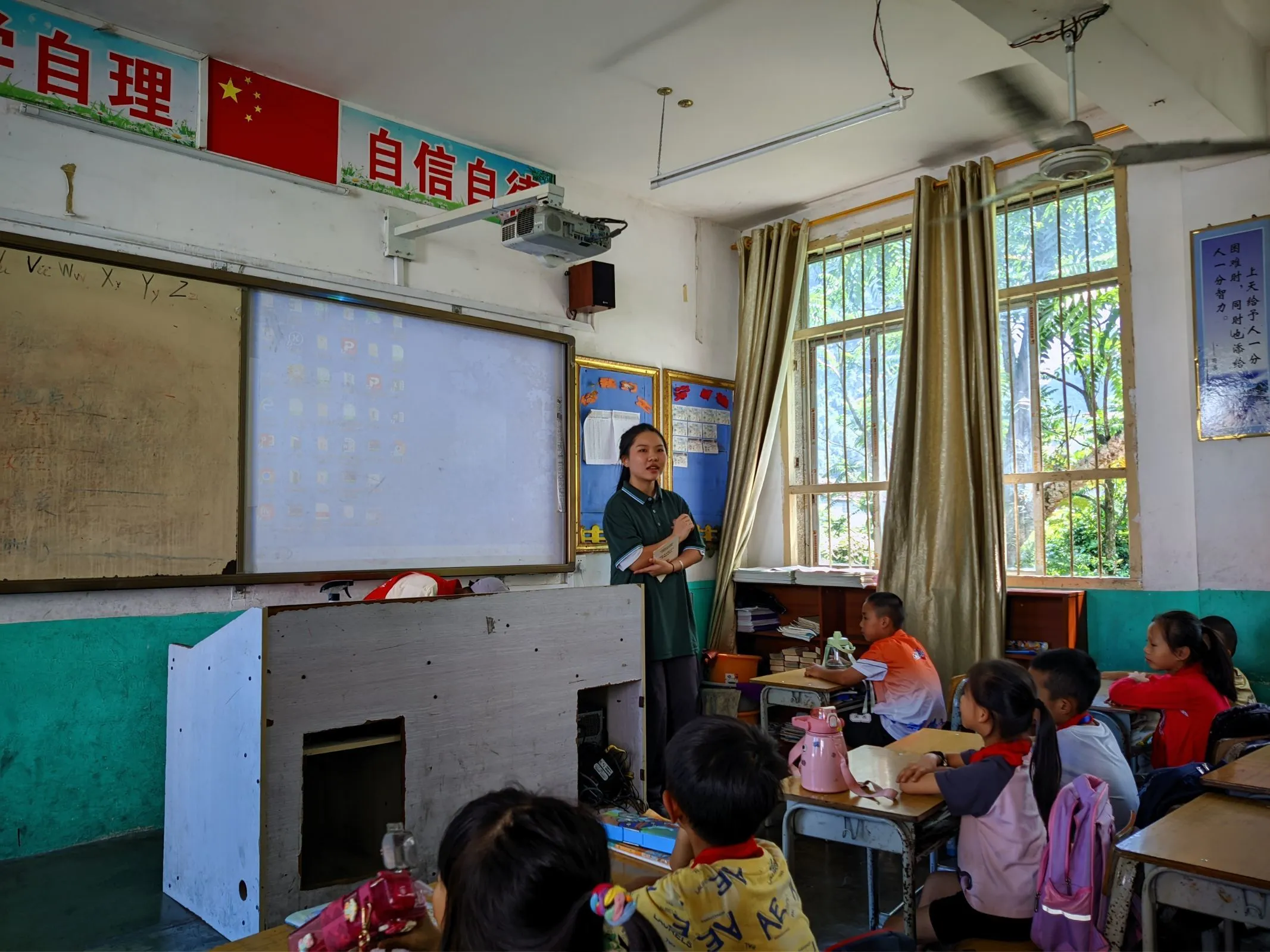随后,志愿服务队在村委干部、指导老师和加方中心小学校领导带领下,来到马山县加方中心小学开展推普实训课。从什么是普通话、为什么要推广普通话、如何讲好普通话、规范使用文明用语对于提高沟通交流的重要性等方面进行讲解,细心解答问题,通过互动的方式纠正他们发音的问题,开展了一场别开生面的语言学习交流活动。