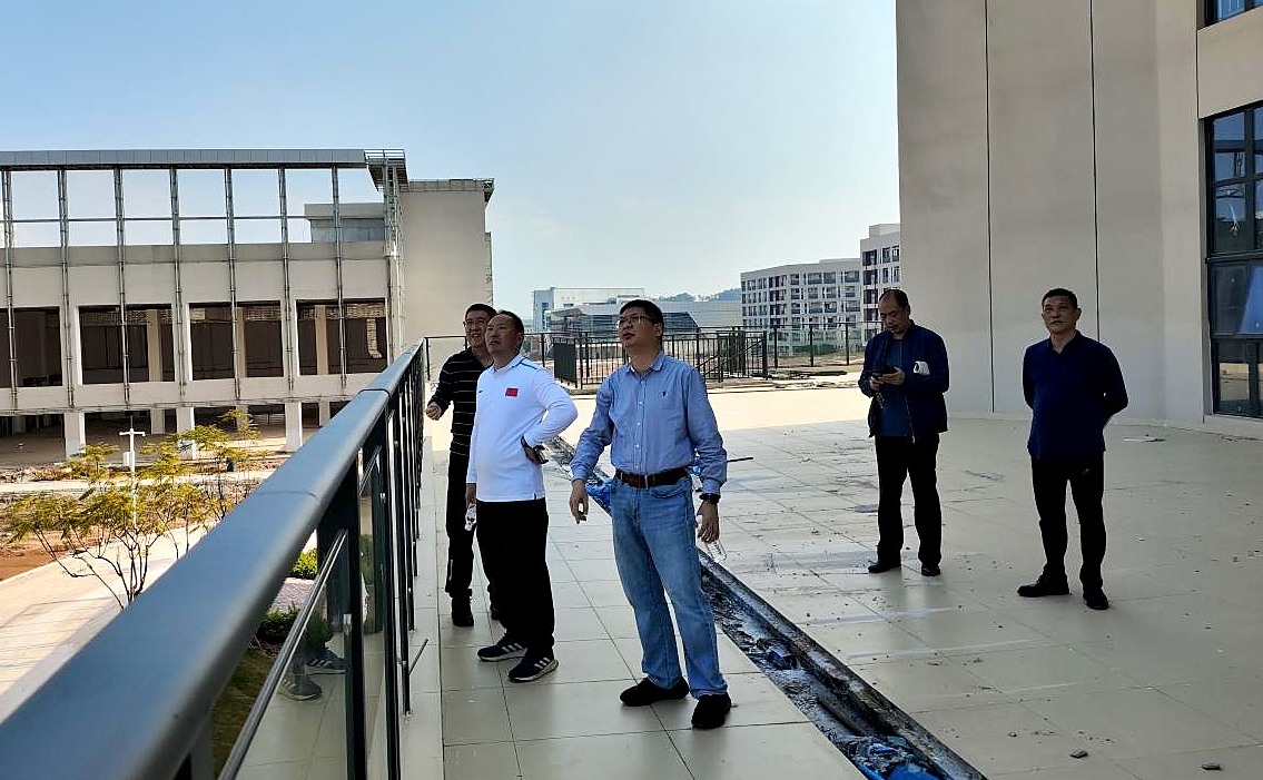 2024年2月19日下午,自治区体育局重大办陆学杰处长一行2人到校相思湖校区项目现场检查,校长韦建勋及新校区办负责人、全咨单位监理部总监陪同检查。