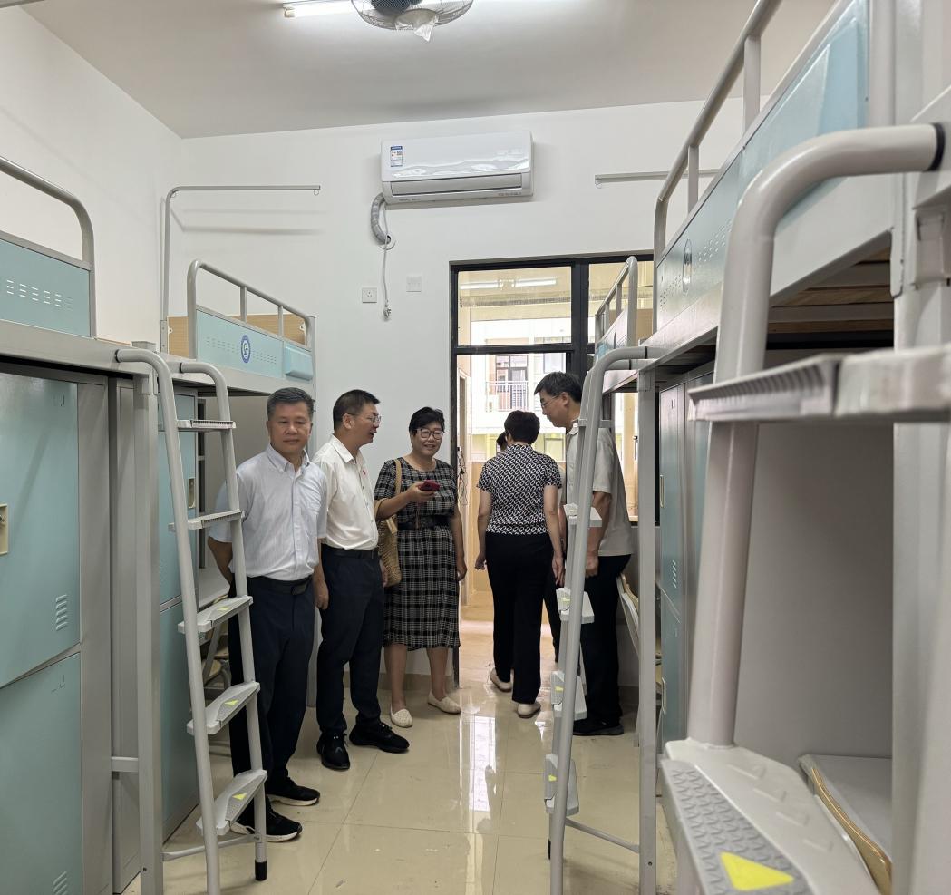 在施工现场,专家组先后察看教学楼、学生宿舍及食堂等,直接与学生入驻息息相关设施设备的安装情况,并仔细检查了水电、消防设施等内部设施的建设进展情况。
