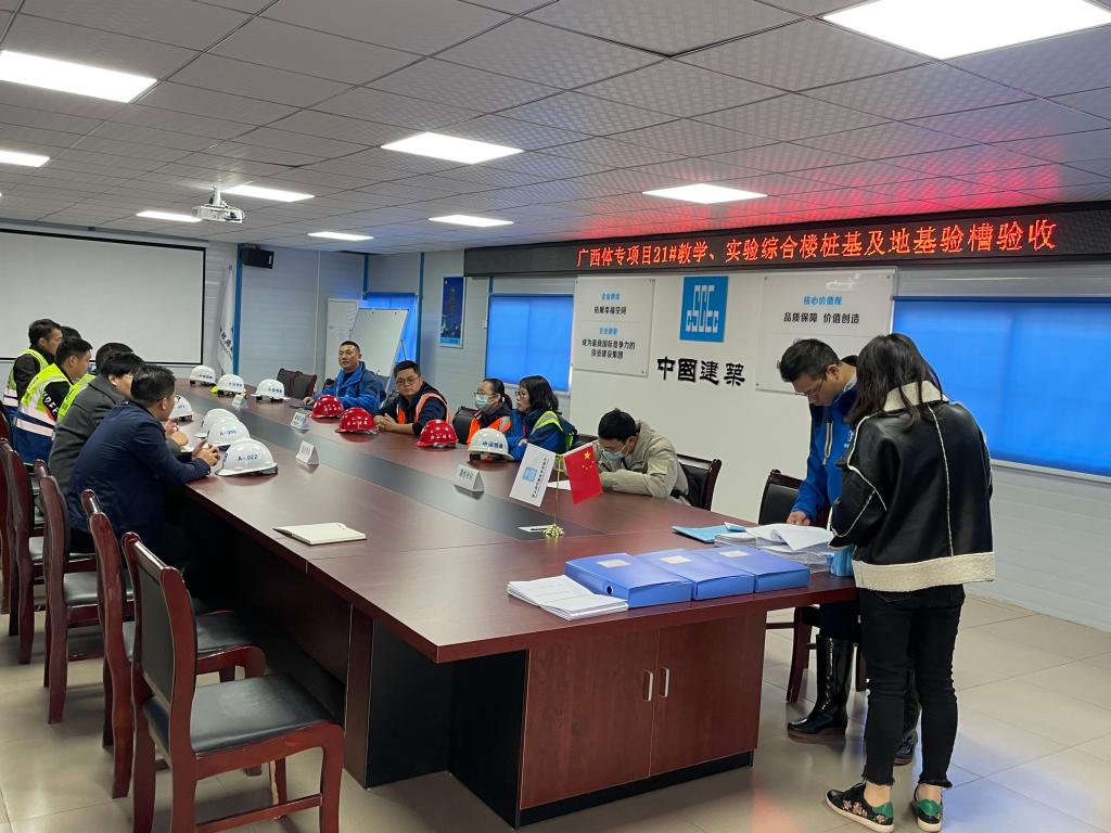 (九)1月27日,我校新校区办在项目工地第一会议室组织召开墙柱梁板整体浇筑安全专项施工方案专家论证会。会议邀请来自广西大业建设集团有限公司、广西建工集团有限公司、广西建工集团控股有限公司、中建海峡建设发展有限公司、广西建工集团第二建筑工程有限责任公司等单位的五名专家,我校新校区办、全过程咨询单位(监理单位)、总承包单位相关人员参加。总承包单位首先对项目工程概况,以及此次安全专项施工方案具体工艺、措施等进行了说明。专家组对专项施工方案进行了认真审查和讨论,认为方案编制条例清晰、内容完善,并提出了一系列宝贵意见和修改建议。(附图9)