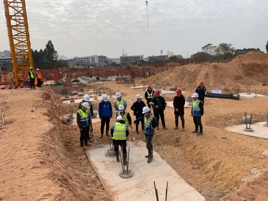 (五)12月3日,新校区建设管理办公室在项目现场组织召开第十二次现场例会。会议要求:总承包方加快土方工程、2#宿舍楼北面鱼塘及综合楼区域的淤泥质土换填施工进度;总承包方就“中国—东盟博览会、中国—东盟商务与投资峰会”造成的工期影响制定解决方案,确保按时完成年底进度目标;各参建单位在确保质量、安全和规范的情况下,高效的完成年度建设目标任务,确保2021年项目国债的顺利申报。(附图7)