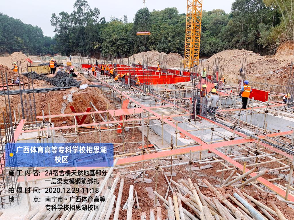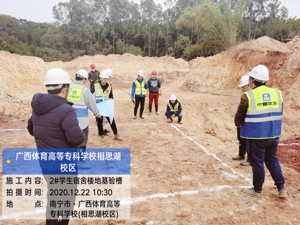 (二十)为确保实现年内完成项目1#和2#宿舍楼基础施工、教学楼桩基施工的建设目标,总承包方加大人员、机具投入,加班加点,昼夜施工。新校区办、全咨方要求在抢抓工期的同时,注重安全保证质量。(附图21)