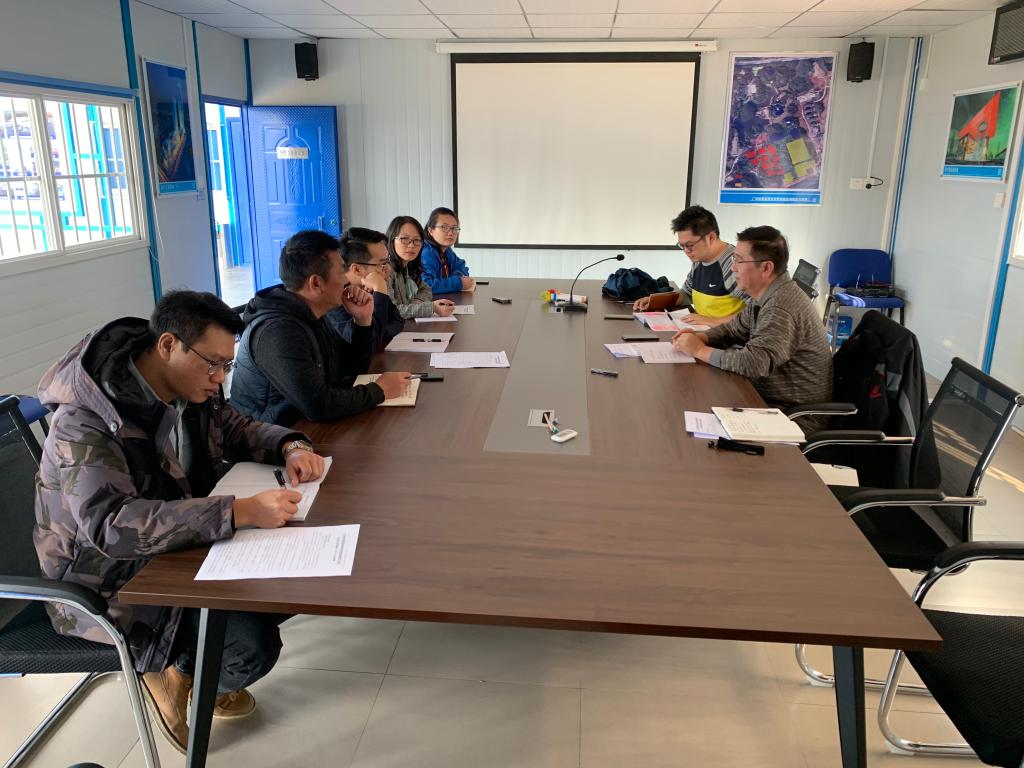 (十五)12月24日上午,新校区建设管理办公室主任曾庆光组织全咨公司、总包单位业务骨干人员在项目工地党员活动室召开座谈会。会议对项目全年工作进程进行简单回顾,总结目前参建各方的工作机制和运作模式,分析项目客观困难和管理存在具体问题,对做好2020年重点工作提出具体要求。(附图16)