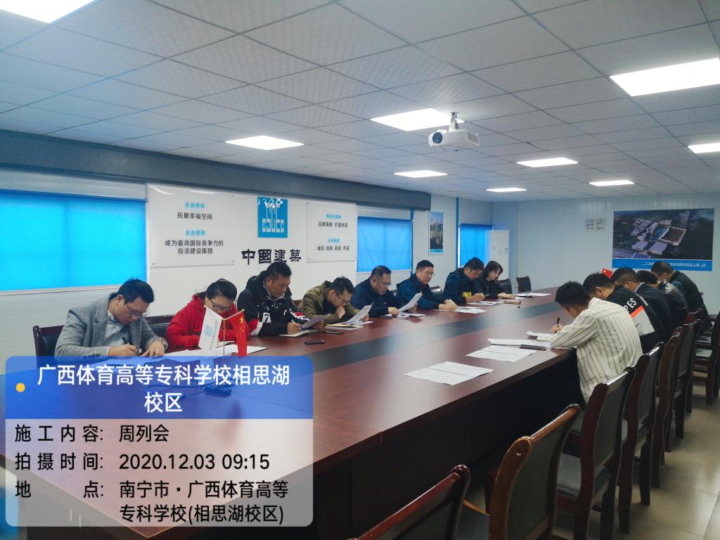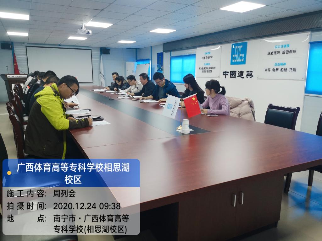 (三)为进一步推进我校相思湖新校区项目建设,12月3日,我校与项目全咨方、总承包方在相思湖校区项目部会议室召开项目协调会。周璋斌书记、胡英清校长、覃世东副校长,新校区建设管理办公室全体人员,全咨方副总经理卓佳和总承包方南宁分公司党委书记、总经理丁钢,以及各方相关负责人出席会议。会议决定要加强沟通联系,齐心协力,共同努力推动项目快速前进(附图5)