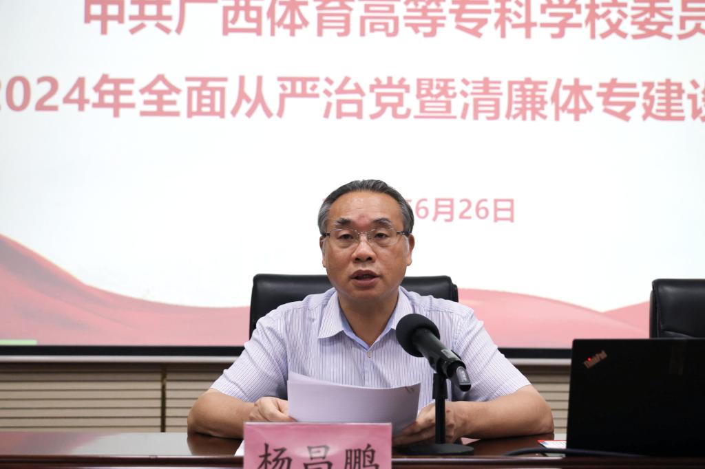 6月26日下午,学校召开2024年全面从严治党暨清廉体专建设推进会。学校党委书记杨昌鹏出席会议并讲话,会议由学校纪委书记罗黎造主持。学校领导班子、中层领导干部、机关各部门干部、各党总支部委员、党支部委员、组织员以及教研室主任参加会议。