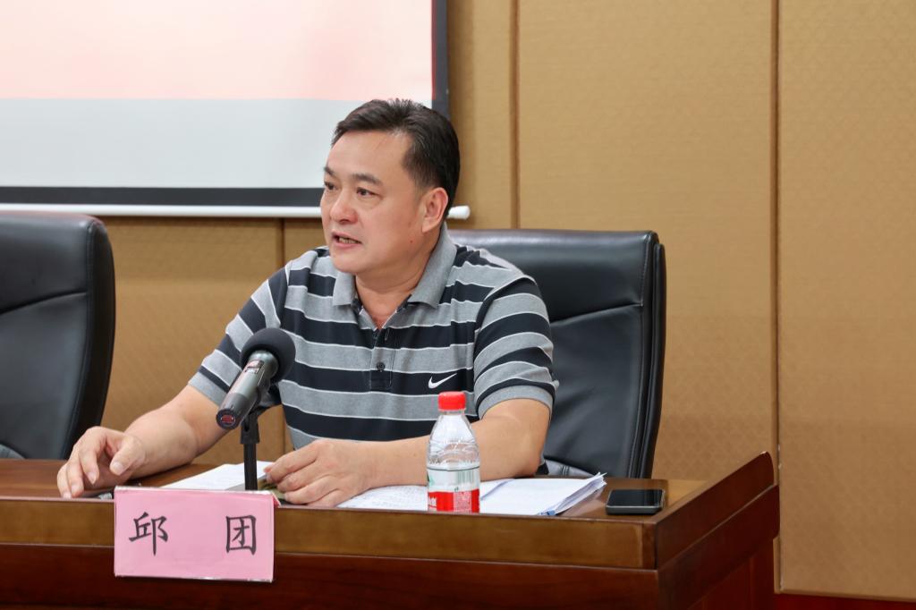 会议首先由邱团副校长解读《广西新一轮高水平高职学校和专业建设计划实施方案(征求意见稿)》文件要求,并以具体案例重点讲解高水平专业群建设方案的编制要点。
