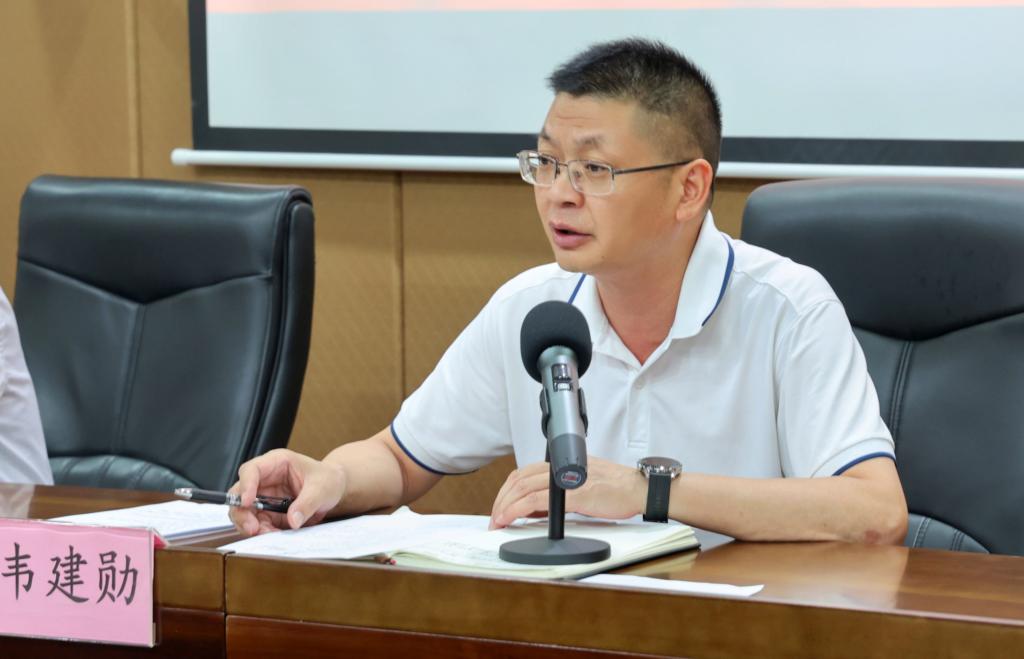 为有效推进我校“双高”建设工作,7月5日下午,学校在综合楼7楼报告厅召开新一轮“双高计划”申报工作布置会。学校党委书记杨昌鹏、校长韦建勋、副书记李爱民、副校长邱团,党政办公室、党委组织部、教务科研处、招生就业处、发展规划处、各二级学院负责人和各专业群相关教师参加会议。会议由校长韦建勋主持。
