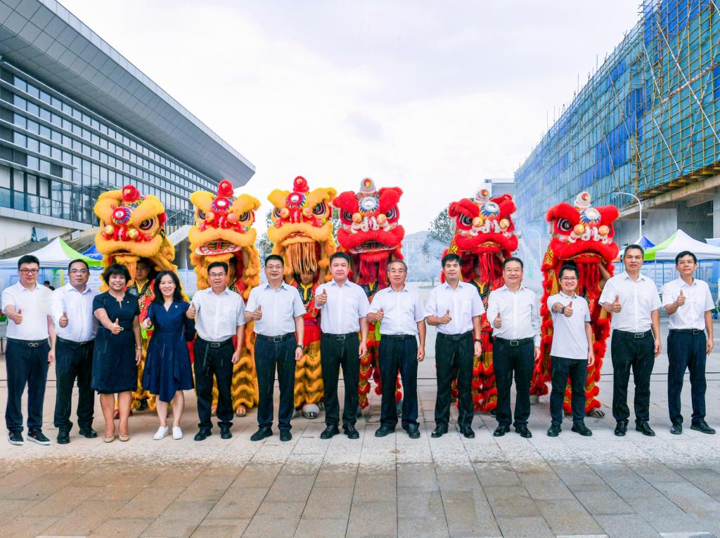 在参加仪式人员的热烈掌声中,领导嘉宾共同为新校区启用揭幕并合影留念。