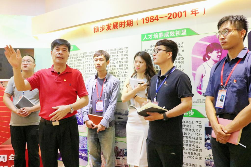 本次学习活动以参观校史馆和召开座谈会两种形式展开。活动第一部分为胡英清校长带领新进教师参观校史馆,并且从“四史”大历史观下讲解了学校创立初期、恢复办学、改革建设、全面发展的四个时期历史,重温了广西体专取得的辉煌成绩。同时,胡英清校长重点介绍了学校目前在办学定位、学科建设、师资队伍、国际交流等方面的总体情况,深情回顾了一代代杰出广西体专人的奋斗事迹和突出贡献,展现了广西体专67年来为我国体育事业发展的奋斗征程,给教师们留下了深刻印象,让教师们对“明德至诚,健行致远”校训有了深刻领会。胡英清校长还深入阐述了我国体育事业发展的前景以及广西体专未来发展图景,坚定了新进教师们对学校未来发展的信心,促进了教师对体专精神的共鸣和文化认同。