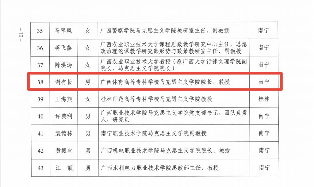 近日,自治区总工会、自治区教育厅联合发文,公布自治区“劳模工匠进学校 思政教师进企业”(“双进”)活动讲师团名单,我校马克思主义学院院长谢有长教授入选。
