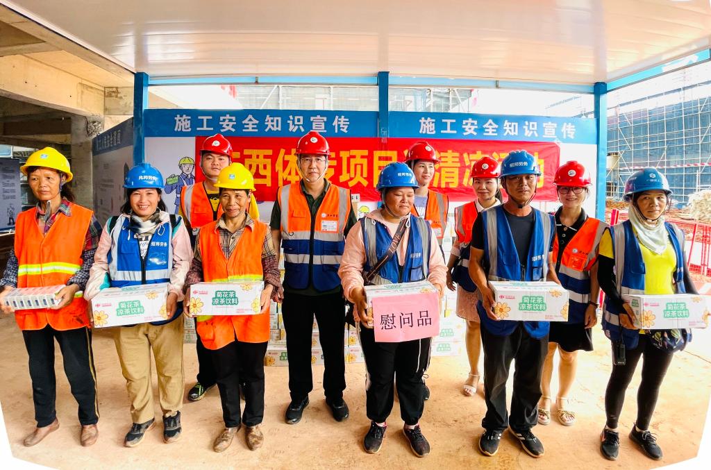 日前,南宁已进入高温模式,为关心关爱项目一线工人的身体健康,6月3日上午,我校办公室宣传党支部联合项目全过程咨询单位和项目总承包单位走进相思湖校区项目工地一线开展“送清凉”活动。