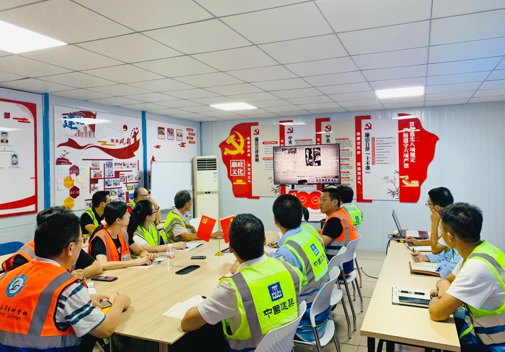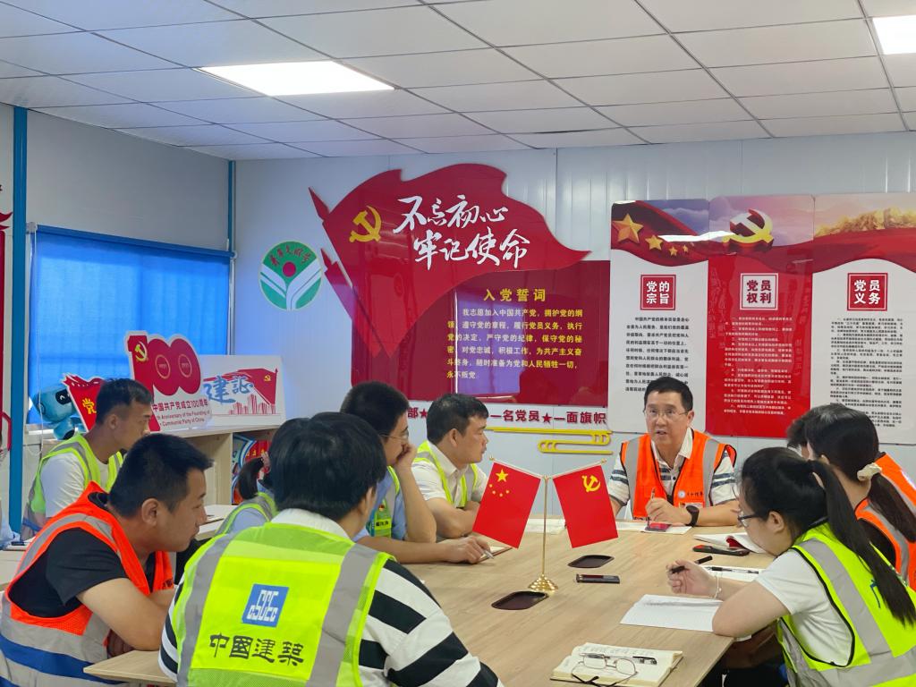 为庆祝建党100周年,回顾学习中国共产党百年光辉历史成就和宝贵经验,统一思想,凝聚力量,推进项目建设,6月22日上午,相思湖校区项目党支部在项目党员活动室开展“奋斗百年路 启航新征程”系列主题党日活动,新校区办、全过程咨询服务单位、总承包单位项目部全体党员及入党积极分子等15人参加活动。