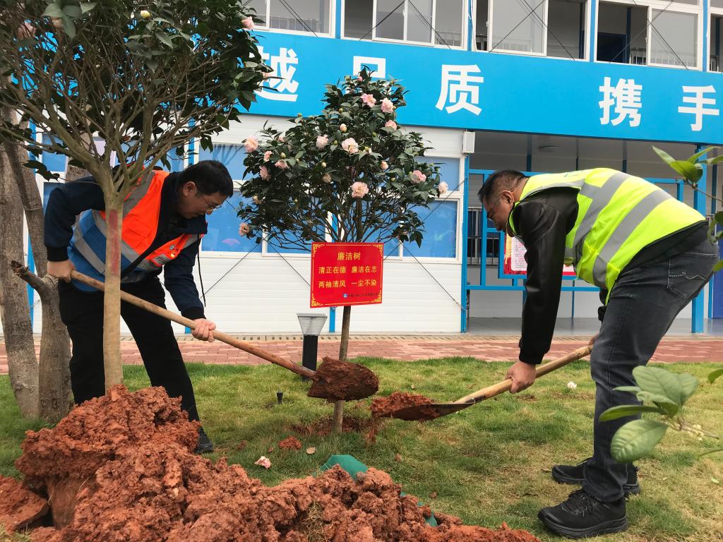 通过本次植树活动,不仅提升了项目团队成员之间的默契,增进了团结,进一步提高保护生态环境意识,而且还为新校区项目工地现场增添了新绿。